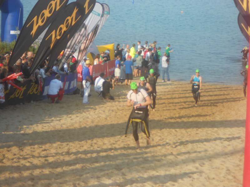 Iz vode sem opletajoč komaj prišel v mivkast klanec, na kolesu začel konzervativno in zgleda prišel tako ven iz vode, da sem kolo prevozil skoraj celo progo sam, brez družbe okoli.. je pa res da sem startal v prvi grupi 400 amaterjev...