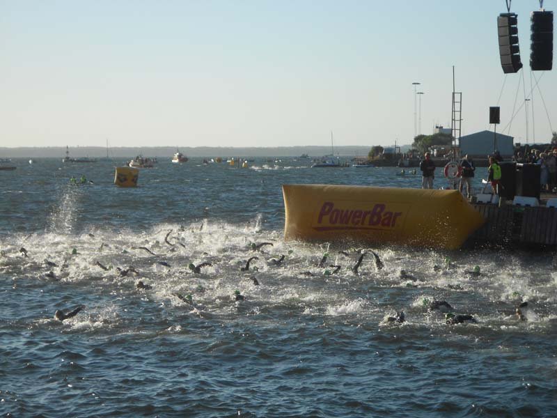 Plavanje v Baltskem morju je zaradi razburkanega morja potekal vsaj meni se je zdelo, neskončno dolgo.. Dobro, da sem mesec prej za trening odplaval Rovinjski plavalni maraton v podobnih pogojih in z mnogo več plavanja :)